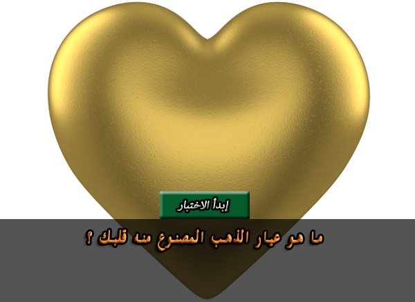 وصف الإختبار : هذا الاختبار يدرس ردة فعلك في عدد من المواقف في الحياة ويتوقع لك عيار الذهب المصنوع منه قلبك.