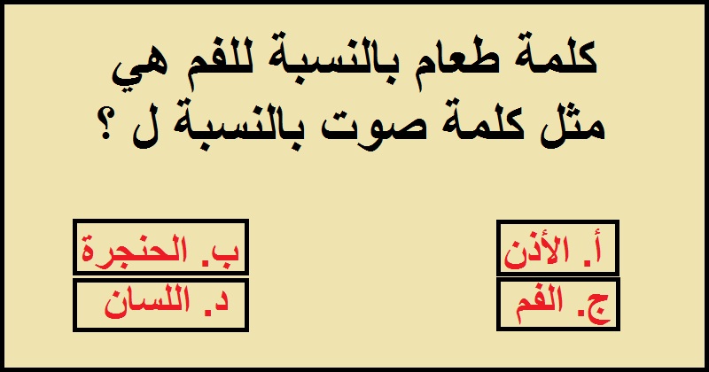 1.كلمة طعام بالنسبة للفم هي مثل كلمة صوت بالنسبة ل ؟
