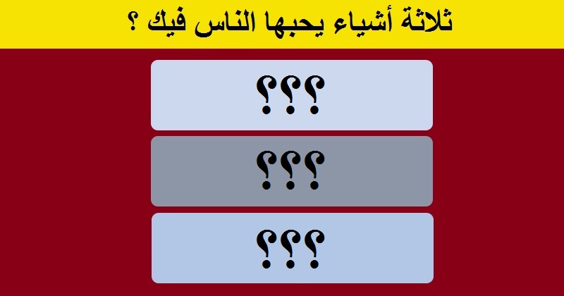 وصف الإختبار : هذا الاختبار يحدد لك ثلاثة أشياء يحبها الناس فيك.